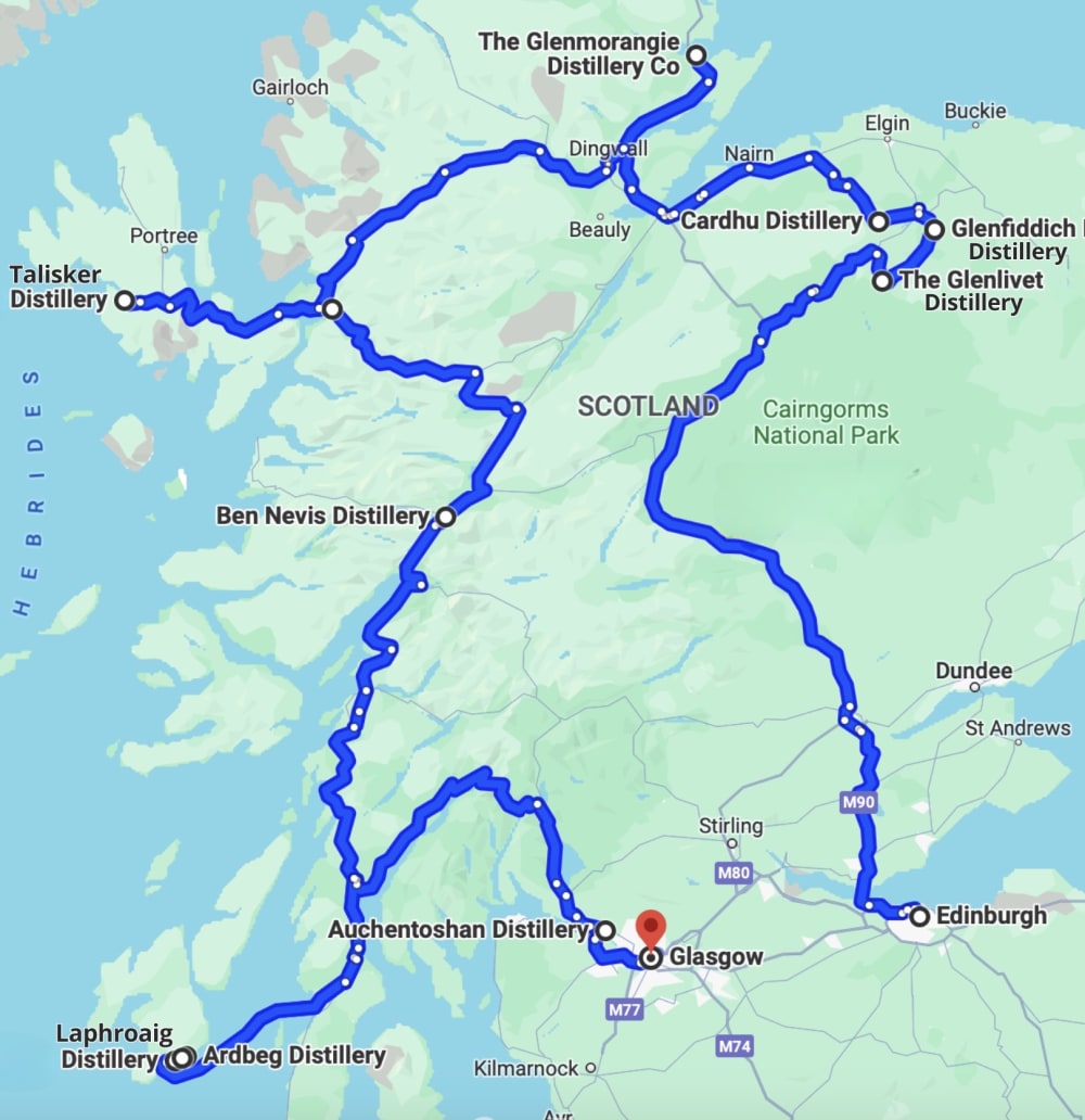 Scotland is not the largest country, but the differences in location and taste of whisky are phenomenal. You will taste different types of whisky in distilleries such as The Glenlivet distillery, The Glenfiddich distillery, The Talisker distillery, The Laphroaig distillery, The Ardbeg distillery, The Lagavulin distillery, The Auchentoshan distillery and others.